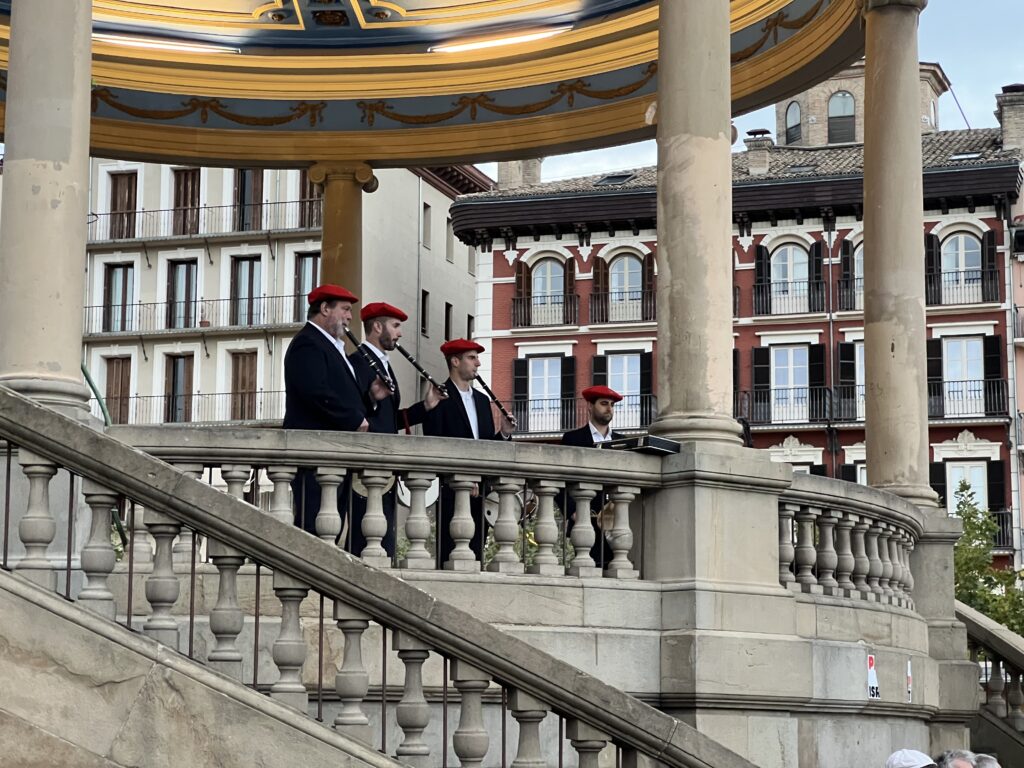 V Benetkah se vkrcava na avion za Barcelono. Tam vzameva taksi do železniške postaje Sankt. V dveh urah čakanja potešiva lakoto s sendvičem in jabolkami. S hitrim vlakom za San Sebastijan (do 200km na uro) prispeva v 4h do Pamplone. Tukaj naju na postaji že čaka sin Nejc z avtom. Naložimo nahrbtnike in se zapeljamo v center Pamplone na večerjo v lepo restavracijo Katuzarro. Na našo žalost bi morali na večejo čakati skoraj uro, ker se restavracijski del odpre šele ob 20:30h. Zadovoljimo se z nekaj pinchosi ter pivom oz. kozarcem vina. Na poti do garaže na Plaza de Castilla zaslišimo glasbo. Baskovski narodnjaki so igrali na instrumente txistu, narod je pa kar plesal. Lepo in spodbudno, da bi se tako dogajalo tudi pri nas. Ja, pa kupimo še nekaj hrane za zajtrk. Nejc naju nato dostavi v hotel Exe Zizur v vasi Cizur Mayor kakih 7km iz centra Pamplone. V naslednji uri delava inventuro v nahrbtnikih prinešenih stvari in si pripraviva obleko in opremo za jutrišnji pričakovano rahlo deževen dan in prvo etapo Camina 2025 s startom iz Roncesvallesa.