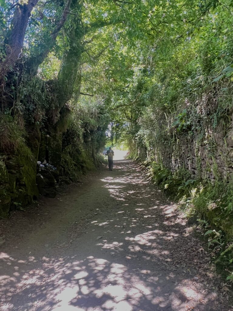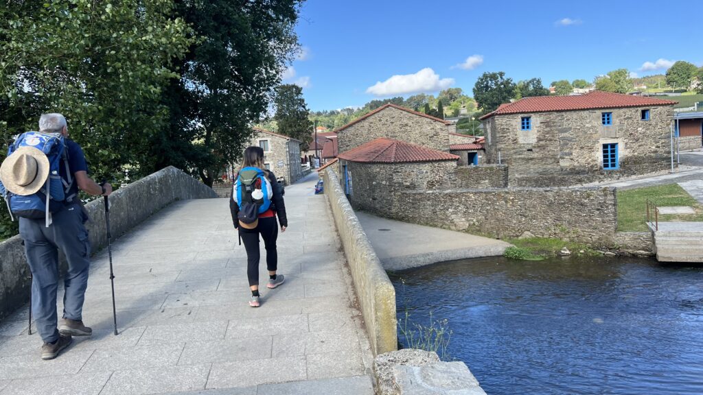 Gričevnata pokrajina v tem delu Galicije je danes narekovala smer: “gori, doli, naokoli”. Gristi sva jo začela okoli 7h, ko naju je na včerajšnji konec poti dostavil taxi. Vreme je spet odlično za hodit: pretežno sončno z nekaj oblaki. Temperatura je okoli 10C in kadar malo zapiha, je kar hladno, kar je dobro za hojo. Hodiva dokaj pridno, pa naju kljub temu prehiteva mladina, ki jo kasneje najdeva v enem od barov na poti.