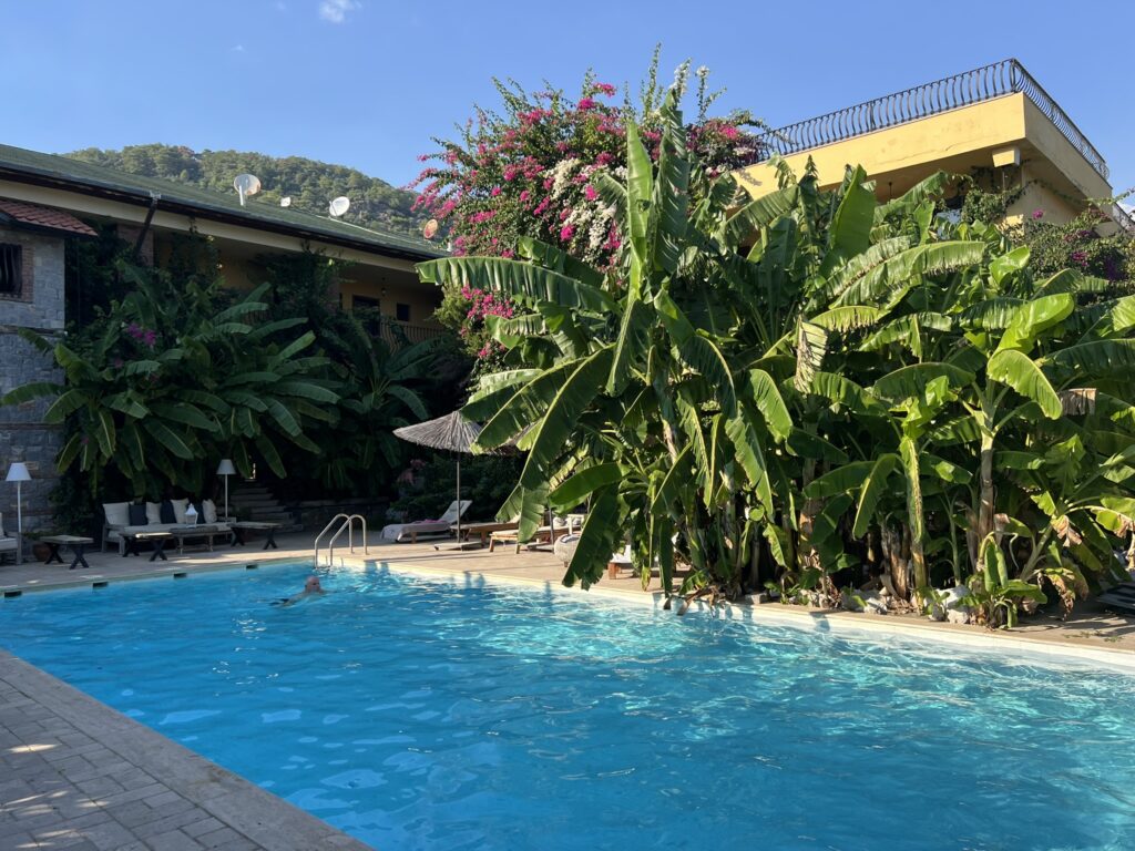 Dvorišče hotela Han Butik Otel Havuz v Serigerme, kjer so “ubijali” čas do odhoda na letališče.