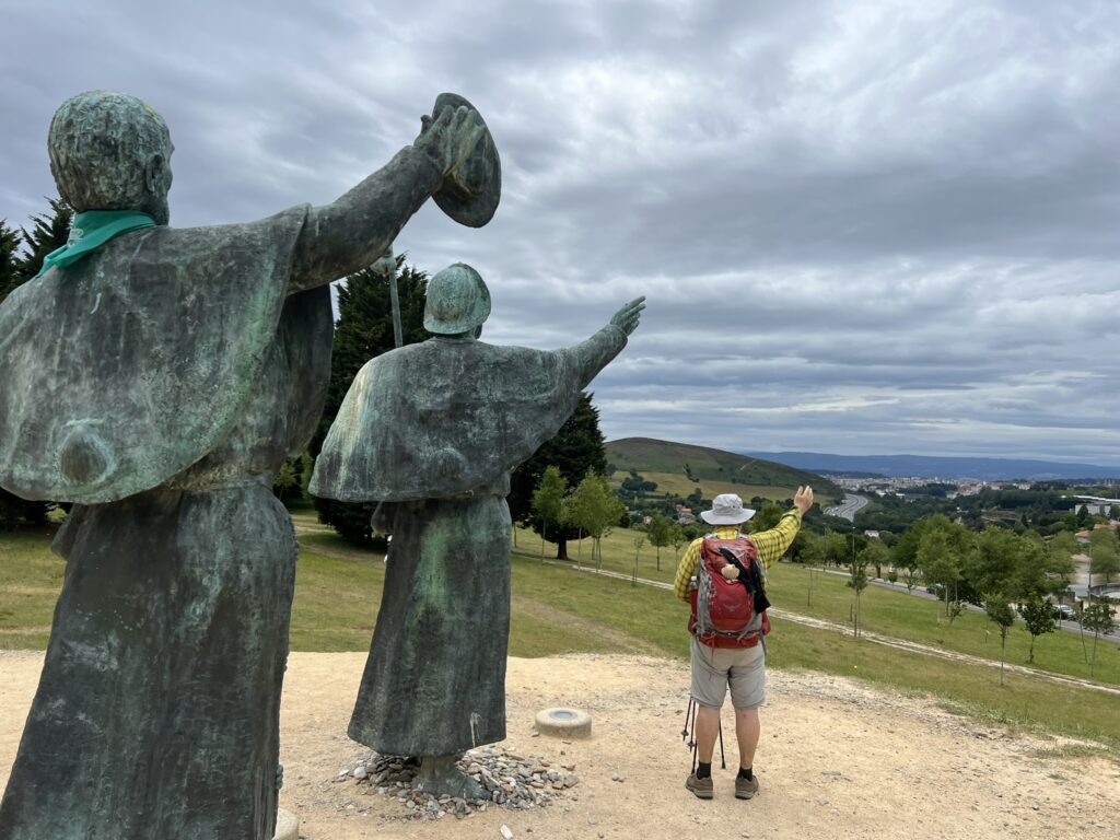 Ob prihodu na Monte Gozo (Goro veselja), ki pa je samo hrib, sva zavila proti kipu dveh romarjev, ki pozdravljata cerkev Sv.Jakoba v oddaljenem Santiago. Ime “gora veselja” prihaja iz dejstva, da se od tu prvič vidijo njeni zvoniki.