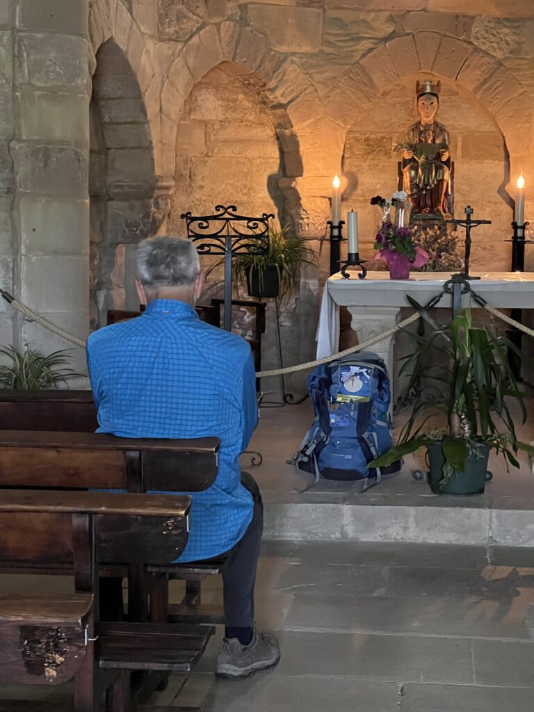 Ob 7h zjutraj, ko je tu še noč, sva že na zajtrku v najine hotelu v premestju Pamplone. Nato vzameva taksi do vasice Uterga na poti Camina. Vesela, da hodiva brez težav, prehodiva vasico Murusábal in nato po poti med polji dosegla svetišče, cerkvico Santa Marija Eunate. Ivo je doživljajsko in duhovno močno vezan na to cerkvico iz 12. stoletja, ki so jo menda zgradili vitezi-templarji kot zavetišče za romarjec Santiago de Compostela. V njej sva se ustavila kot romarja.