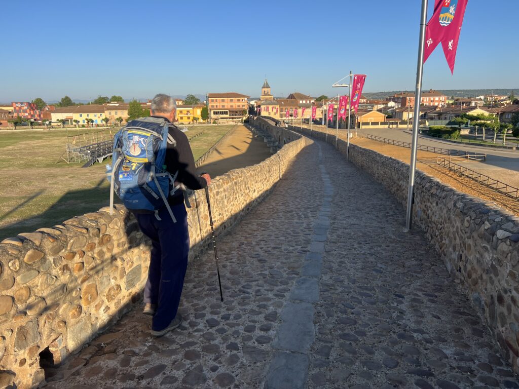 Čez znameniti srednjeveški most v Hospital de Orbigo.