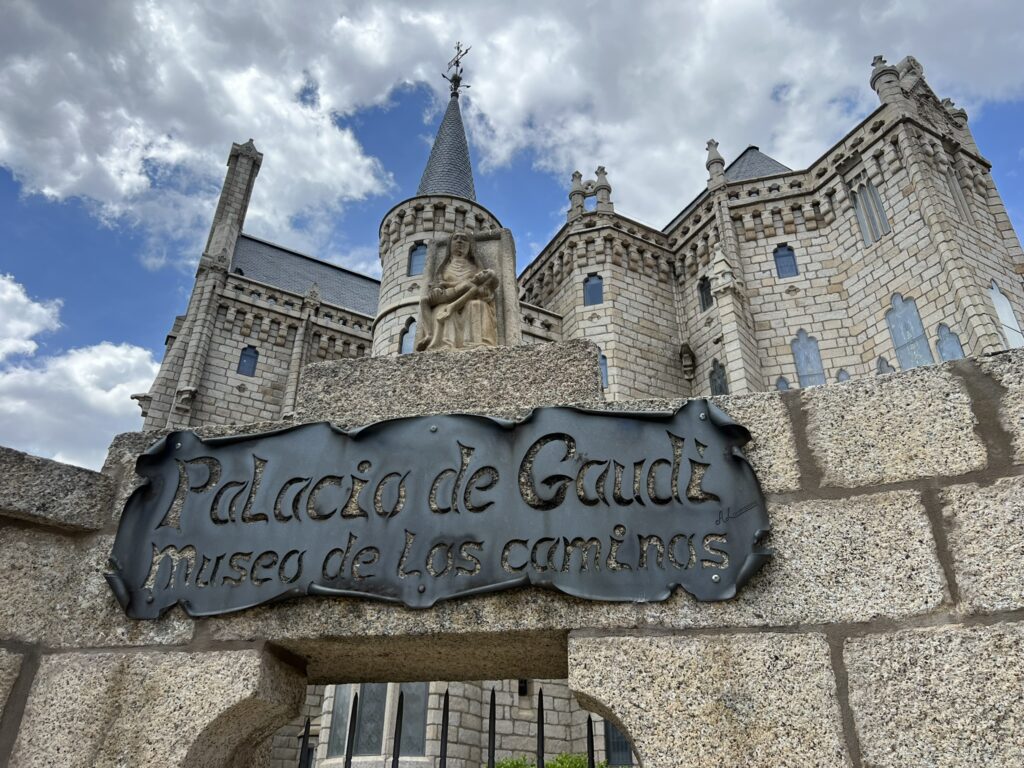 V ospredju na desni Gaudijev škofijski dvorec v Astorgi, yadaj levo katedrala zz južne strani.