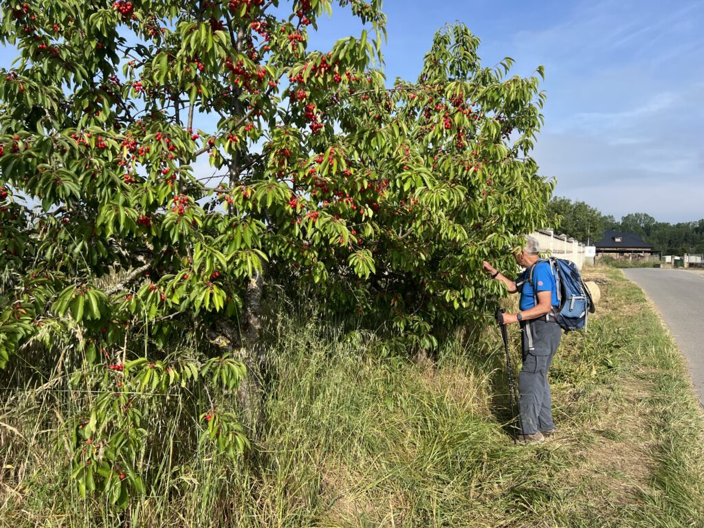 Vstopila sva v pokrajin El Bierzo, ki je znana po vinu in češnjah. To kar so za Slovence Goriška brda, je za Špance pokrajina El Bierzo. Trta je že začela bujno poganjati, češnje so pričele zoreti. Teh je toliko, da ostajajo neobrane, zato nekateri romarji pomagajo pri obiranju.