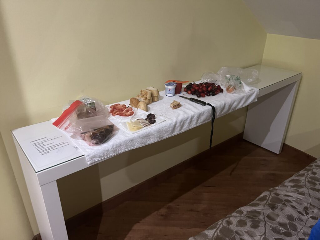 Dragotova postrežba zajtrka v sobi ob pol šestih (ob 4h po soncu).
